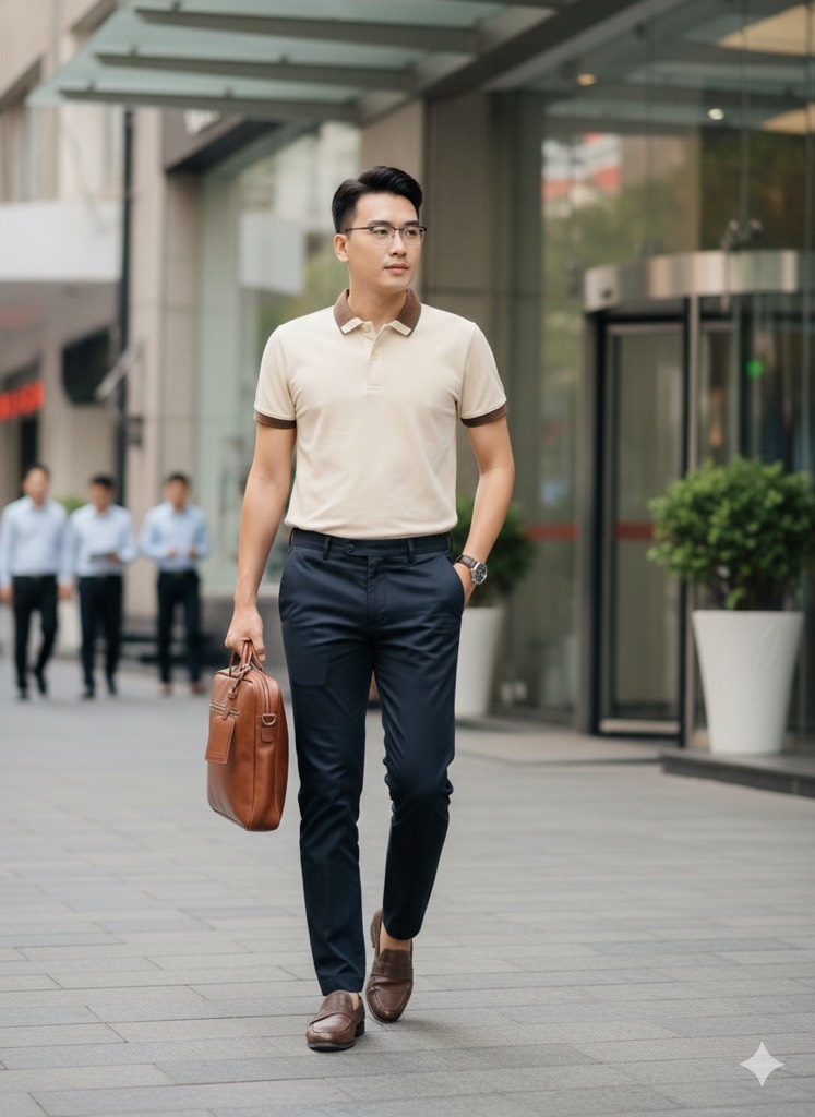 Mang vẻ ngoài tinh giản nhưng rất sang, phù hợp cho nam giới 20–40 tuổi thích phong cách gọn gàng, ôm vừa tôn dáng nhưng không bị bí. Gam màu be tạo cảm giác sạch sẽ, sáng mặt và cực kỳ dễ phối — kết hợp quần tây cho vẻ lịch sự, hoặc jean/kaki cho phong cách trẻ trung thường ngày.