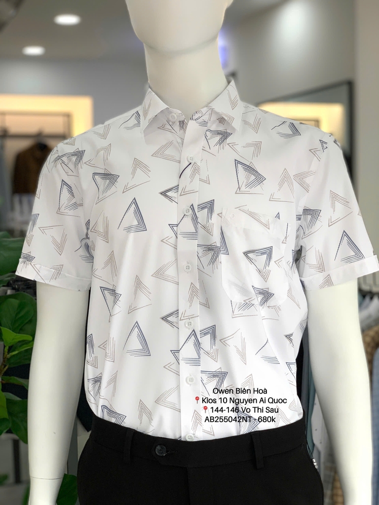 Áo Sơ Mi Ngắn Tay Trắng Họa tiết