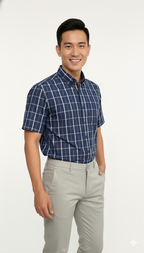 Áo sơ mi ngắn tay body fit màu xanh tím than phù hợp với nam giới yêu thích phong cách lịch sự, gọn gàng nhưng không quá cứng nhắc. Gam màu xanh tím than trầm, nam tính, dễ tạo thiện cảm và rất dễ phối với quần tây, kaki hoặc jean tối màu.