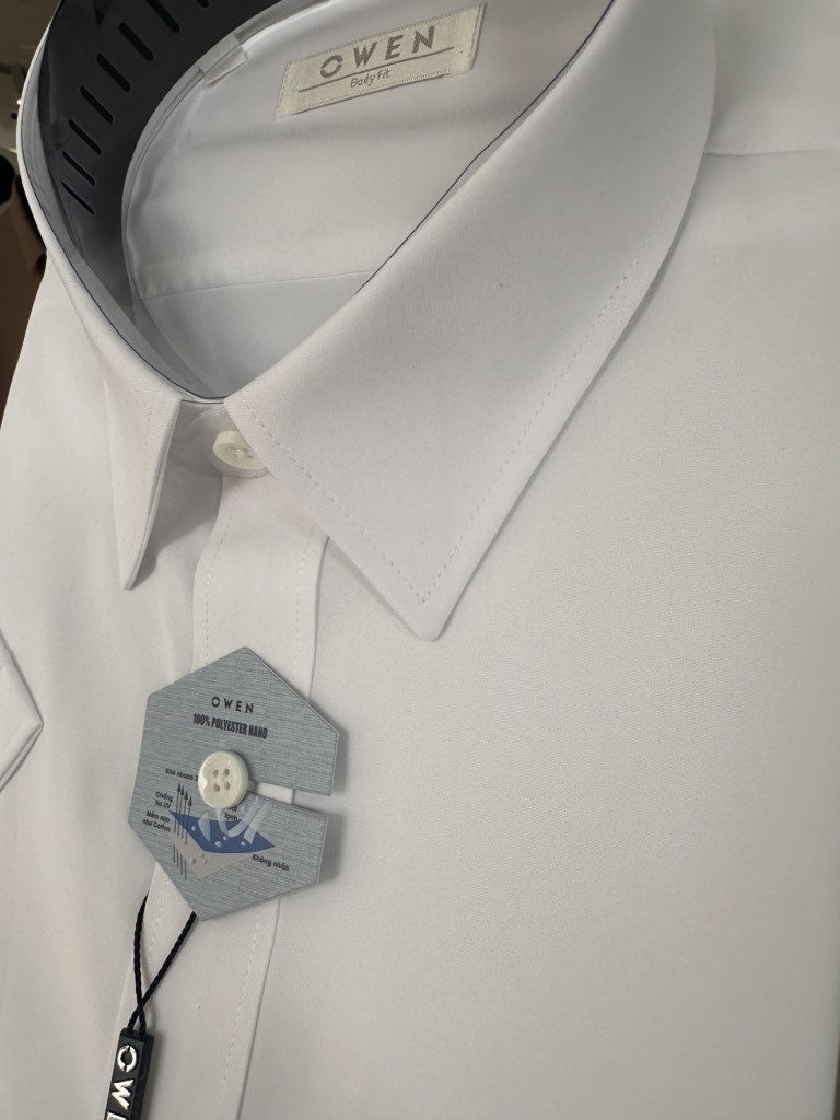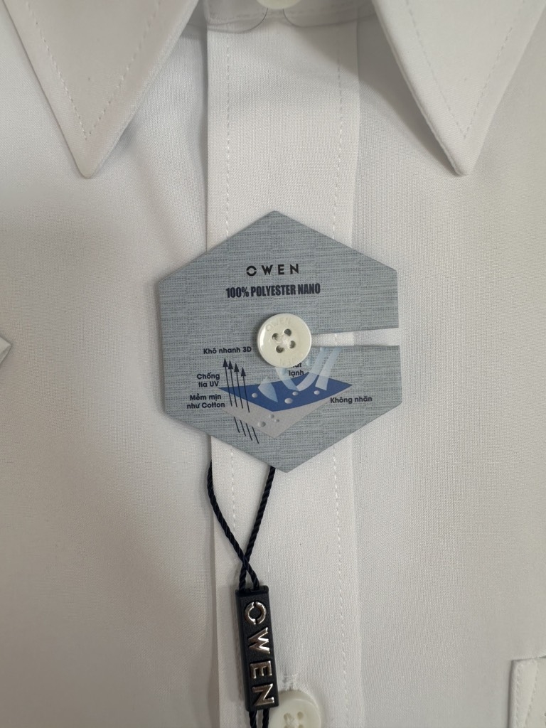 Chất liệu 100% Polyester Nano cho bề mặt vải mịn nhẹ, ít nhăn, giữ form tốt và dễ chăm sóc. Công nghệ Nano giúp áo trông đứng dáng hơn, hạn chế bám bụi, phù hợp mặc suốt ngày dài mà vẫn gọn gàng.